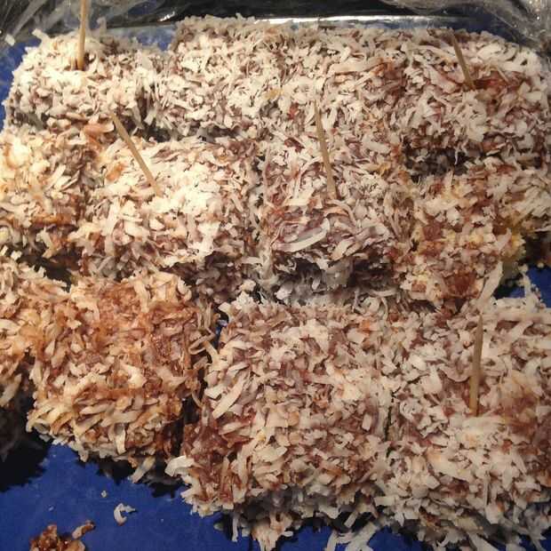 La parte más difícil de hacer Lamingtons es cubierta en chocolate y luego les rodando en coco. He leído unos pocos lugares que usan los australianos de la torta es un día o dos viejos. Para que pueda hacer la torta con anticipación y luego añadir el chocolate a los pocos días.