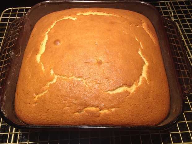 Después de que ha cocido al horno su pastel, sacar del horno y dejar para enfriar en la bandeja. Cuando es suficientemente enfriado, dale la vuelta sobre una rejilla de alambre para refrigeración adicional (usted puede también ponerlo en la nevera).