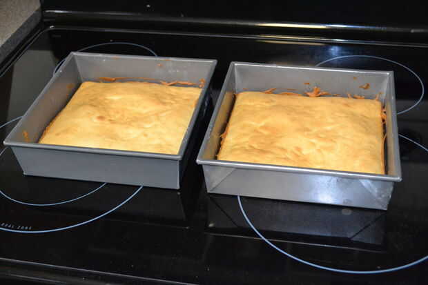 Ligeramente de mantequilla y enharinar dos moldes de torta cuadrada de 8 pulgadas.