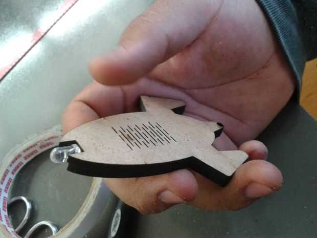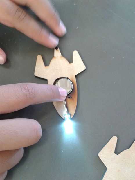 Una de las patas de la pila de palos con tal de al hacer presión con la cara de la lampara esta haga contacto con la pila, poner la pila en el hueco y serrar toda la pieza con cinta doble cara.
