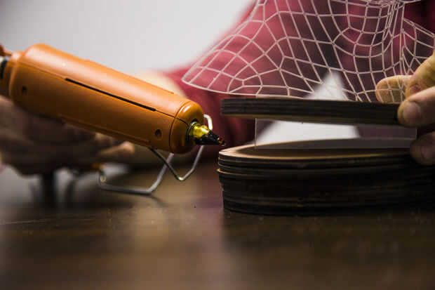 Una vez todos los pedazos sólidos, comenzar a pegar los discos para hacer un cilindro hueco. Pegue este cilindro por debajo de las piezas ranuradas. Esto le dará el espacio para la electrónica.
