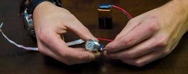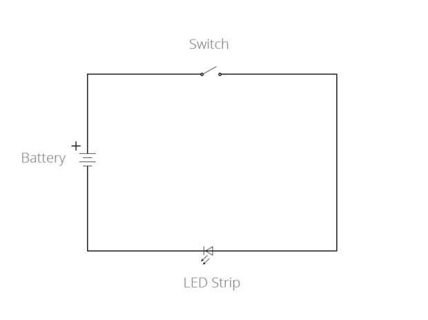 Crear un circuito siguiendo el esquema adjunto. Hemos utilizado una batería de 9v y dos secciones de un 12v tira de led. Otras combinaciones son posibles, aunque algunas matemáticas de circuito pueden ser necesario.