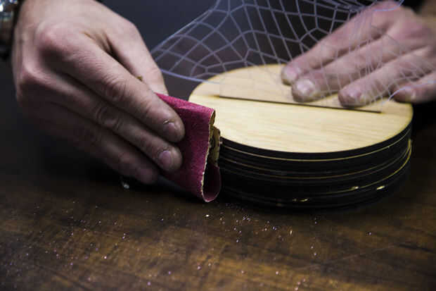 Arena a lo largo de la base para conseguir un liso consistente acabado. Añadir laca o pintura según lo deseado.