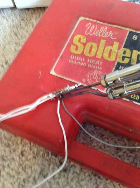 Así que ahora que tiene la cáscara vacía de la lámpara de cortar el alambre para dar forma y conecte el cable a la clavija de teléfono. Me pareció de soldadura buena porque es bastante fácil y bastante confiable.