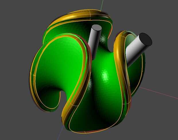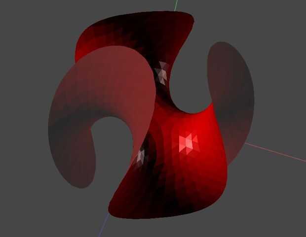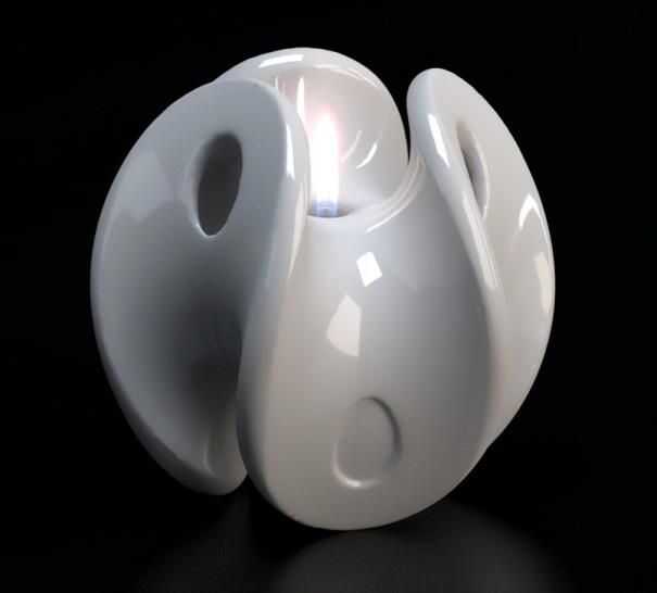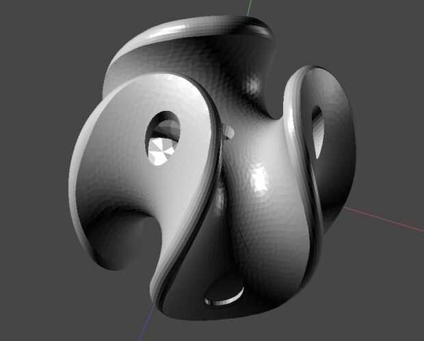 Tiene forma de una superficie de Enneper. Usé El Evolver de superficie, que es un software gratuito destinado a matemáticos, para generar el cuerpo principal. Había modelado los agujeros, bordes de bullnose, adornos y filetes interiores en Rhinoceros. Luego exportar todo a un archivo STL y utiliza Magias se materializan para limpiar la malla. Mi caja de herramientas de software se ve así por razones históricas (la última actualización para Evolver era en 2008) pero no hay razón que suya sería la misma. De gustibus--su lámpara probablemente no se verá como cualquiera la mina!