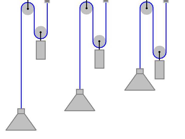 La polea principal está suspendida de una viga del techo por un tornillo, los cables también se unen a este montaje.