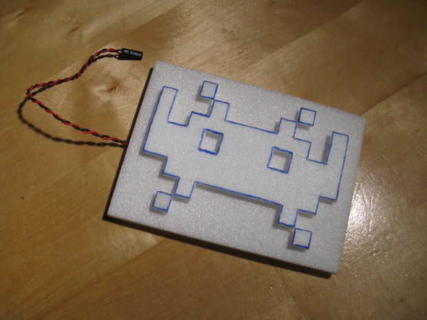 se necesita un cortador de espuma de poliestireno, un led, una fuente de alimentación y pegamento.