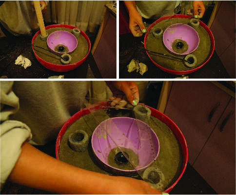 Después de estos pasos, corregí las brechas donde las zapatas se colocaría en midiendo las direcciones, ángulos de las zapatas y las distancias entre las zapatas en el procedimiento de moldeo que era casi completa. Por este medio, tanto las zapatas fueron estabilizados y se estableció la simetría. Después de este procedimiento, he dejado la moldura que obtuve para el secado.