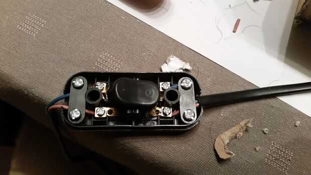 Luego Cruz punzante el interruptor del reposapiés para montar el interruptor deslice firmemente el conector a través de los pies y suavemente puff interruptor en el agujero previamente hecho