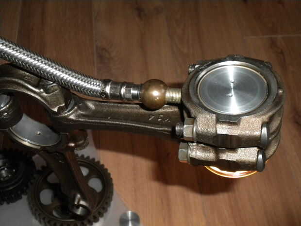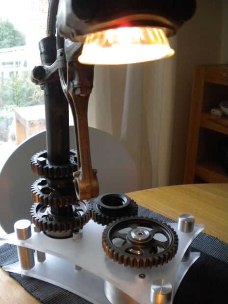 Éste fue el resultado de la necesidad de crear un proyecto de ingeniería de GCSE de ejemplo para mis alumnos y yo realmente quería hacer algo de piezas del motor de chatarra que compré de ebay... De alguna manera terminé con esto, estoy tan contento con el resultado he pensado compartir la alegría :)
