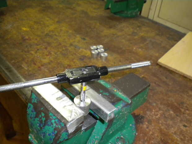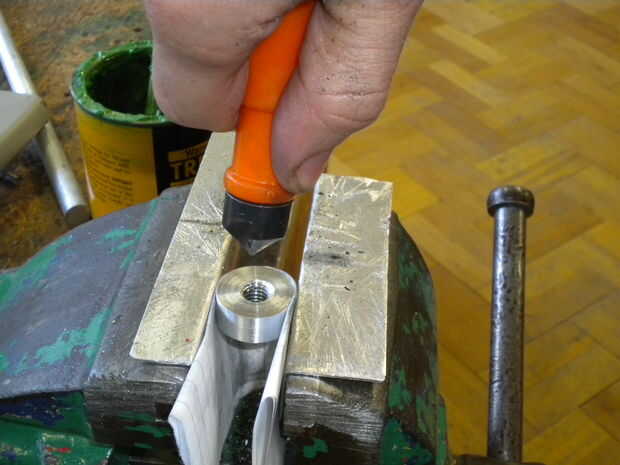 • Usando un torno taladro de centro de aluminio de Ø25mm