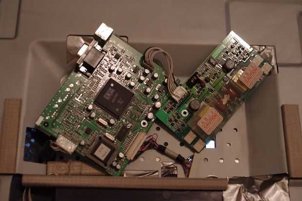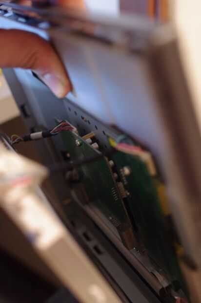 La idea es simple; para tomar un trabajo pero de pantalla plana no deseado y hacer algo útil con él en vez de simplemente tirarlo todo a la basura. Por lo tanto, deshacer su caso de la pantalla. No tengo fotos de este detalle, es bastante fácil. Para las pantallas de mi tuve que separar las 2 mitades con un destornillador y rasga aparte. Bajo esta era 4 tornillos que sujetan el panel y luego un montón de enchufes en el otro lado.