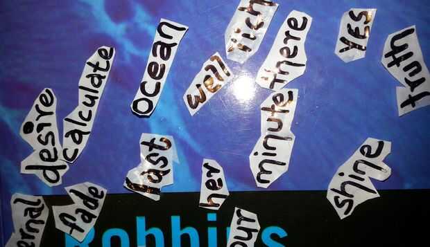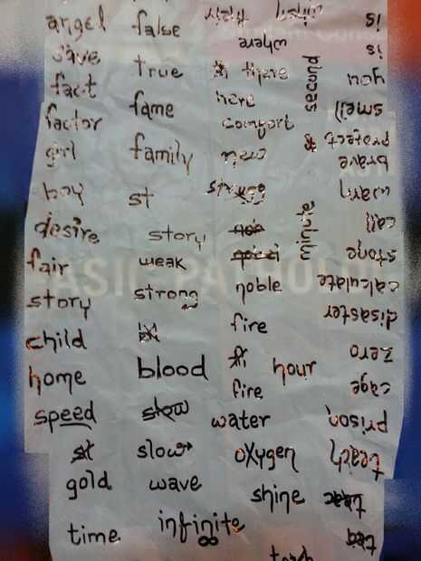 2. Corte una tira de la bolsa. Ahora toma un marcador y escribe palabras en la tira. Que utiliza palabras para éste pero puede usar lo que quieras, caras sonrientes, nombres, símbolos, pequeñas figuras de palo, su hasta usted.