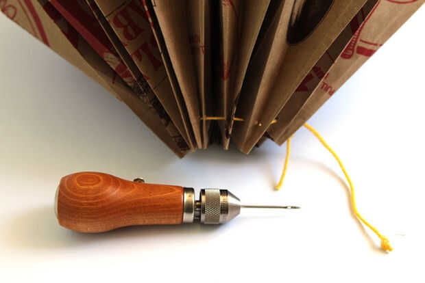 El paso final es empujar los agujeros en el extremo superior y una cadena o un hilo por los agujeros del hilo de rosca.