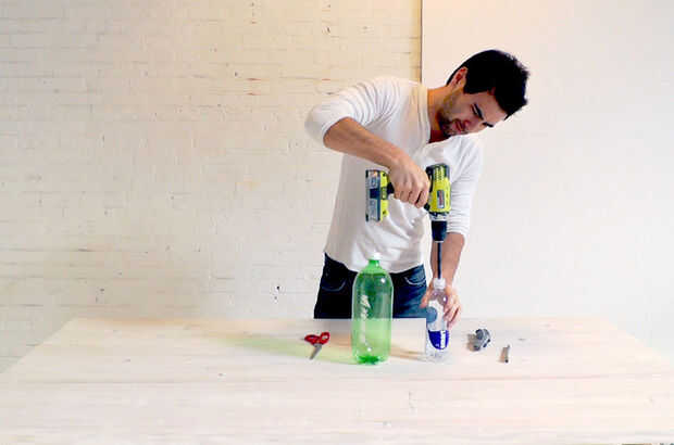 Paso 3: Haga un orificio en las tapas de las botellas de soda