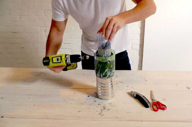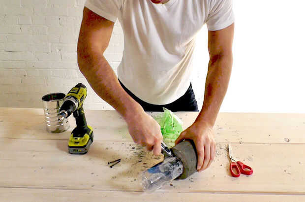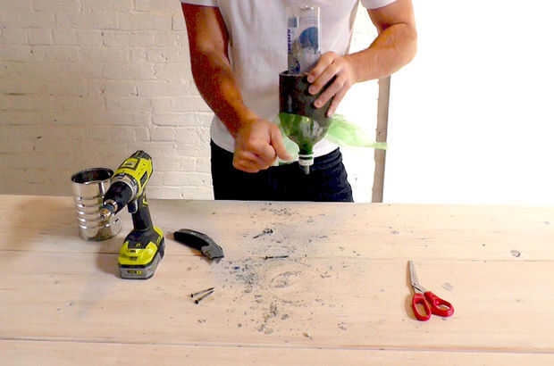 Utiliza un cúter y tijeras para quitar la botella de plástico.