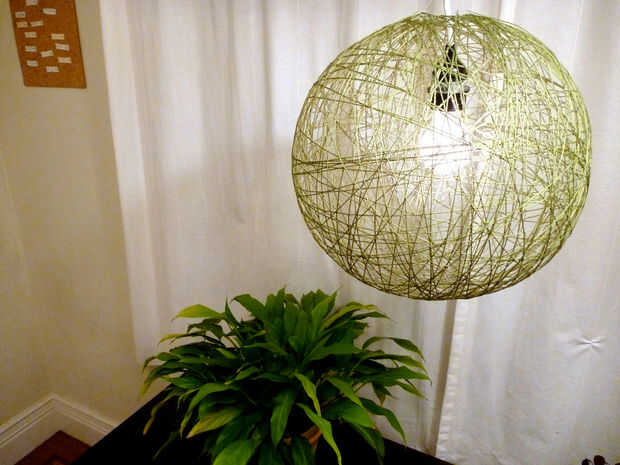 hacer una diseño de calidad cadena colgante lámpara en su los propios con algunas ganchillo hilo, un globo y tela de refuerzo. Hace un poco un lío, toma un día para secarse, pero se ve genial, es infinitamente más barato que comprar uno de Design Within Reachy es la caliente nueva moda DIY Lámpara que está barriendo la nación!