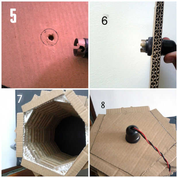 4. En el centro del Pentágono corta un agujero bastante grande, de modo que usted puede insertar la mitad de lo portalámparas (imagen 5)