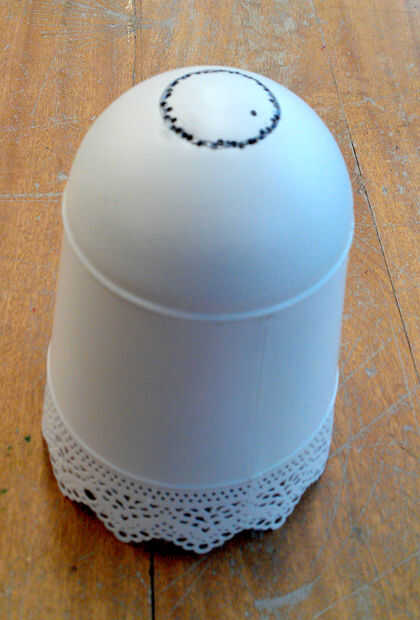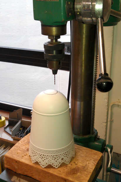 Desatornille el anillo de plástico del conjunto cable Hemma y coloque en el fondo de la maceta colgante Skurar (o la parte superior de la lámpara de colgante Skurar :-)). Trace el círculo con el marcador.