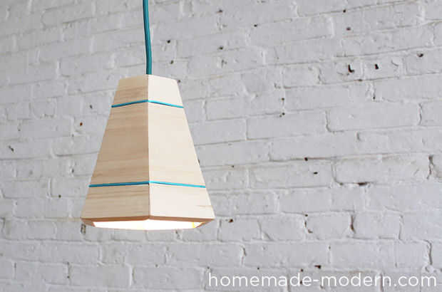 Crear una lámpara colgante de madera DIY de un pedazo de 3/4 grueso pino. Este es un proyecto simple pero requiere de algunos cortes precisos de una sierra de inglete compuesto. Una serie de cortes en bisel 30 grados produce los 6 lados del hexágono. Ajuste la guía de inglete para hacer un inglete leve corte al mismo tiempo le da la forma hexagonal una forma cónica, cono.