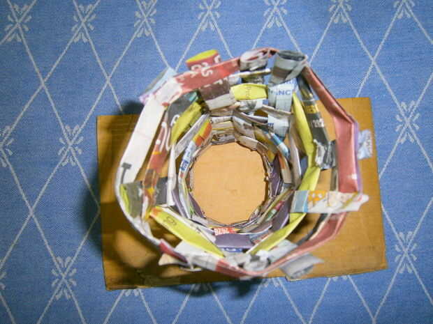 Ahora basado en la forma de brazalete, cortar un trozo de cartón. Basado en el portalámparas cortar un agujero en el medio.