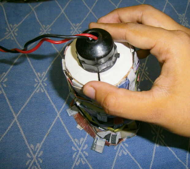 Pegar la cartulina con el sostenedor de la lámpara en la parte superior de la lámpara. Deje que se seque.