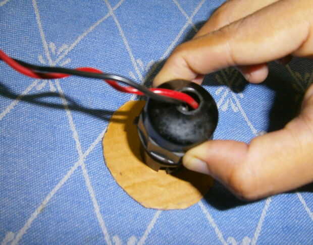 Colocar el portalámparas en el agujero y sujetar con la anilla de cortina.