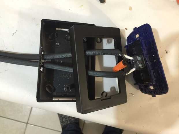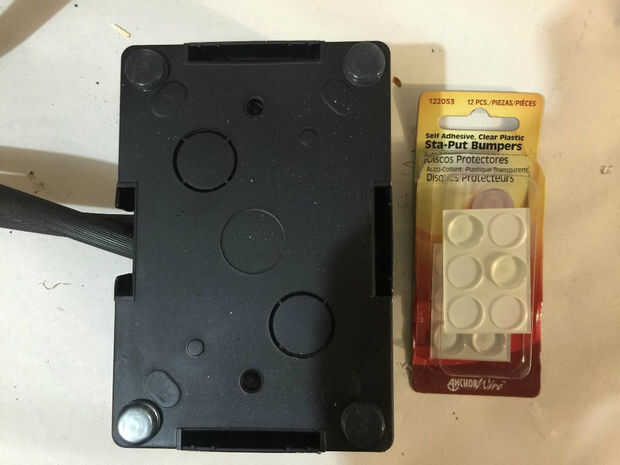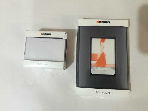 • Usé una caja de "bticino", interruptor y cubierta. También he puesto topes plásticos en el botón para proteger la madera de mi mesa de noche.