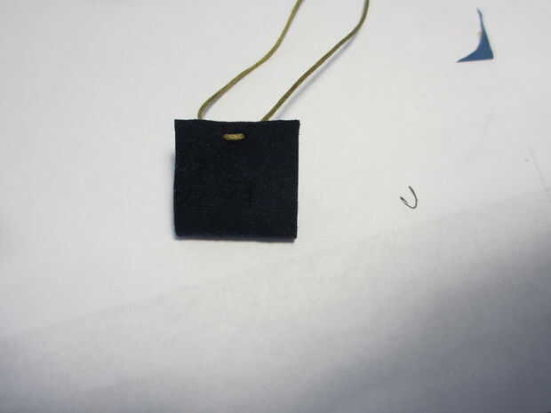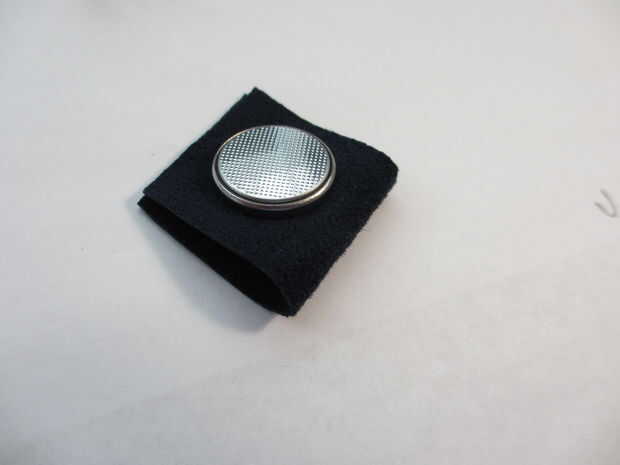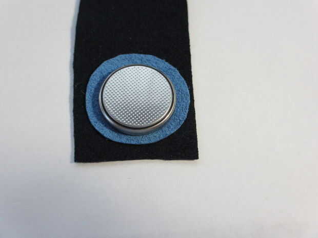 Finalmente, use una aguja grande para coser su cable a través de ambas capas de la tela de atrás al frente y luego frente a la parte posterior. La puntada en la parte delantera llevará a cabo el colgante cerrado garantiza que la batería tiene una buena conexión.