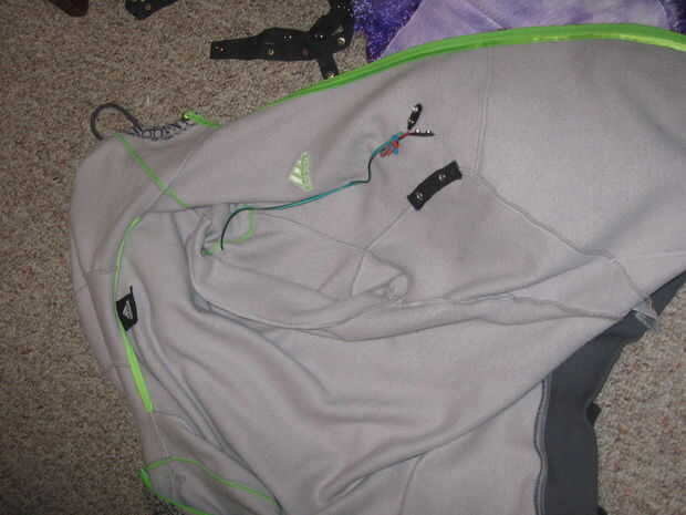-Tuve una sudadera de adidas así que era conveniente enroscar los cables a través de una de las tres franjas.