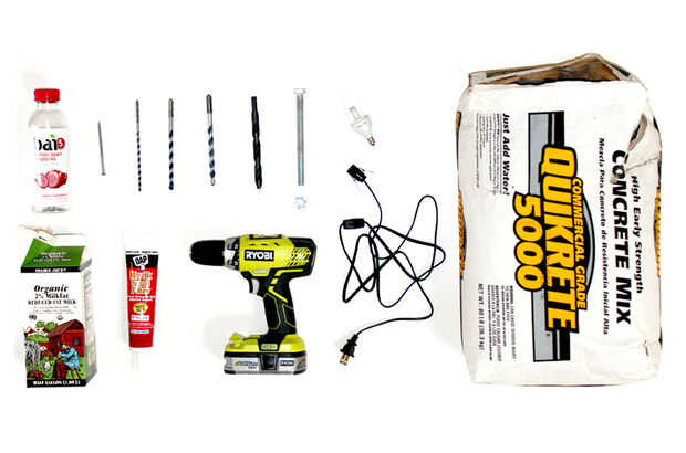 QUIKRETE® 5000 mezcla de hormigón es una mezcla de grado comercial de piedra o grava, arena y cemento especialmente diseñado para una mayor resistencia temprana. Está disponible en Home Depot y normalmente viene en bolsas de 80 lb. La parte más difícil de trabajar con él está moviendo la bolsa de 80 libras. La pequeña cantidad necesaria para este proyecto es fácil todo lo que tienes que hacer es agregar agua y revolver bien.