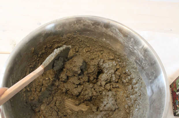 Siga las instrucciones del fabricante sobre la proporción de agua a cemento. Los principiantes tienden a añadir demasiada agua. Desea que la mezcla a la consistencia de masa para galletas. Mezclar bien y luego mezclar más. Desea que cada grano de arena a ser mojado sin agregar demasiada agua.
