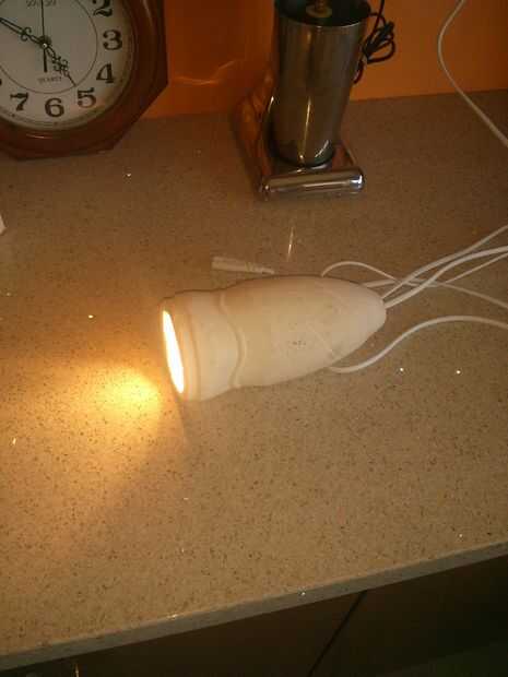 Para mantener la lámpara estable dentro de la pantalla de hormigón, até a ella un pedazo de polysterine como se puede ver.
