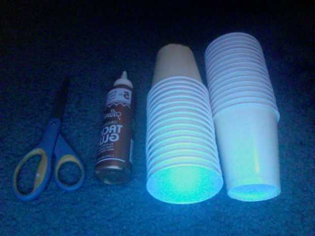 Una varia cantidad de tazas de café de papel (por favor no ir a comprar las tazas, derrota a propósito de reciclaje). Tenía 32, pero había utilizado 7. Añado más a mi araña más adelante, para que sea más esférica y bien. bonita.