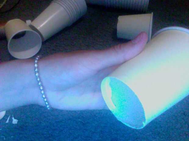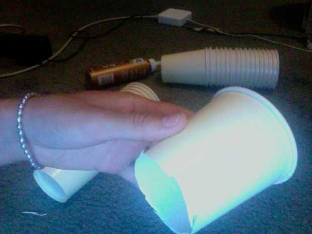 ¿Pensamiento sobre el reciclaje de vasos de papel usado? Aquí está el proyecto para usted.En primer lugar, necesita 12 tazas de papel. En este caso, son de tamaño mediano (unos 11 cm de altura).En segundo lugar, mida el borde de la taza y dividirla e
