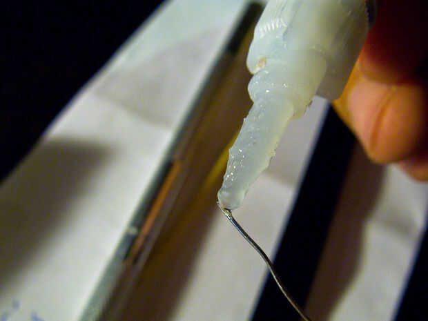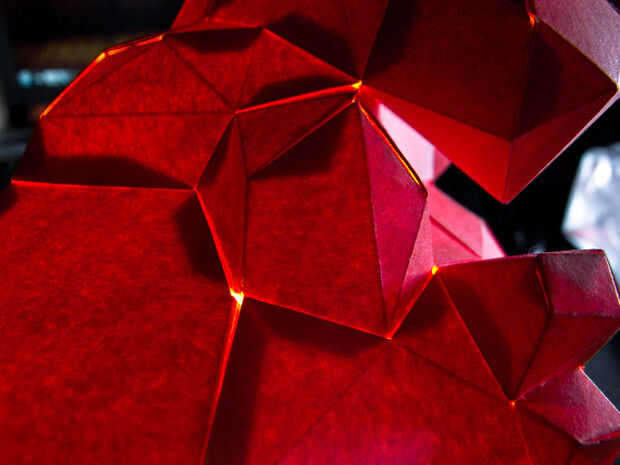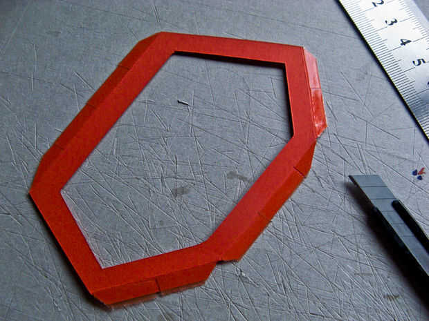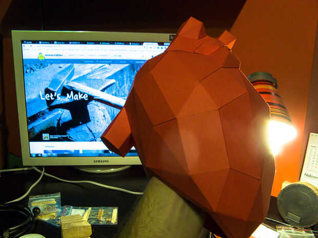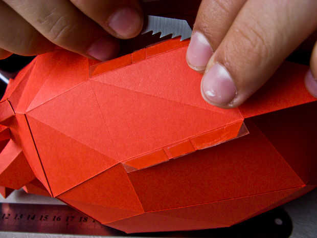 En cuanto a pegar - comencé con el palillo del pegamento del papel regular que aspira, luego trató de PVA diluido (alrededor de 2:1 o 3:1: agua del pegamento) mi amigo sugirió que trabajó realmente algo bien en la mayoría de los casos, pero al final me encontré con una cinta de doble cara transparente muy delgada de forma agradable y rápida de montar a pesar de que es visible en algunos lugares (debido a unattentiveness principalmente por lo que se puede evitar) y tal vez el hecho de que permite cierto movimiento (estiramiento), así que usted tendrá algunos de esos pequeños agujeros en las esquinas donde el papel no estaba alineado perfectamente (creo que esto también es evitable). Es posible arreglar algo por supergluing esas esquinas después está montado, como yo lo hice, aunque sugiero fijar estos puntos como pegue una parte más pequeña del corazón junto, debido a facilitar el acceso al lugar. Usar superglue responsablemente, ya que es bastante visible cuando se seca y no quieres algunas manchas blancas al azar en el lado visible del corazón. Primero aplica una pequeña cantidad en el alambre de una resistencia que encontré cerca y luego utiliza ese cable para aplicaciones de alta precisión en el modelo. Ver fotos.
