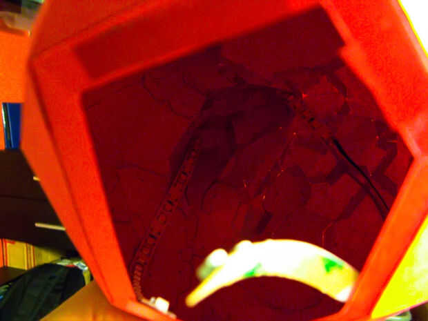 El corazón sí mismo estuviera pegado a la base con la misma fina cinta de doble cara que utiliza para el montaje de la misma. Después es, debe ser capaz de conectar los conectores para las tiras de LED a través de la parte inferior de la base.