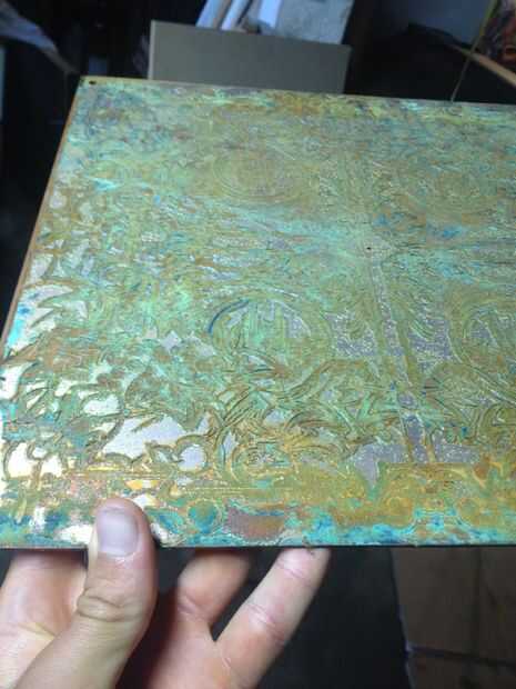 Otros toques estéticos pueden incluir cepillado su soldadura con sulfato de cobre líquido después de la limpieza ligeramente su soldadura con lana de acero. Esto se aferra a la soldadura dándole un buen acabado cobre. Diferentes pátinas son también una gran manera de traer una sensación más envejecida y orgánica a su cobre.