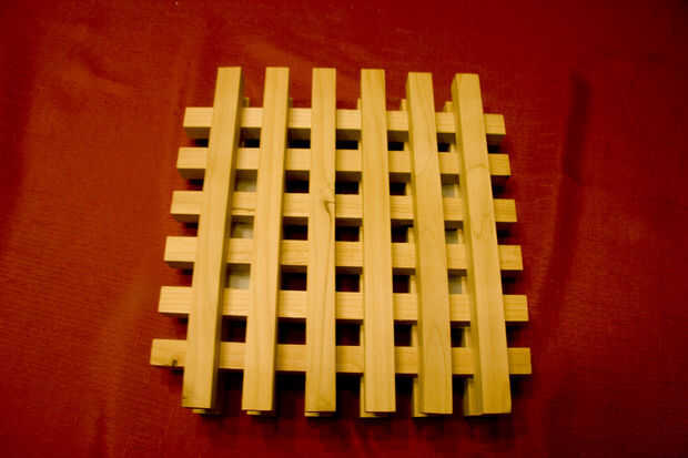 Tomar las piezas largas y extienda con cuidado. Los espacios entre la madera son el mismo espacio que la madera sí mismo, así que utiliza las futuras piezas colocar 13 piezas, bien alineados y luego se retira cada uno de otros.