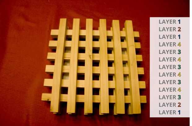 Consulte la guía de capa para determinar el diseño de cada capa. Usted podrá duplicar cada tipo de capa varias veces como construir las 13 capas.
