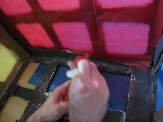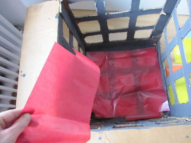Primero tuve la idea de cortar las hojas en pequeños 9 pedazos pero eso haría el trabajo más difícil para que me caliente pegado en cada lado una hoja entera por supuesto para cada lado un color diferente.