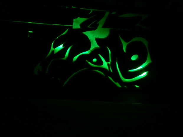 impresionante león-lobo arte decoración de tablas de palet viejo y una puerta de ducha, mano tallada y 2 brillo de bombillas de luz LED el diseño!!!