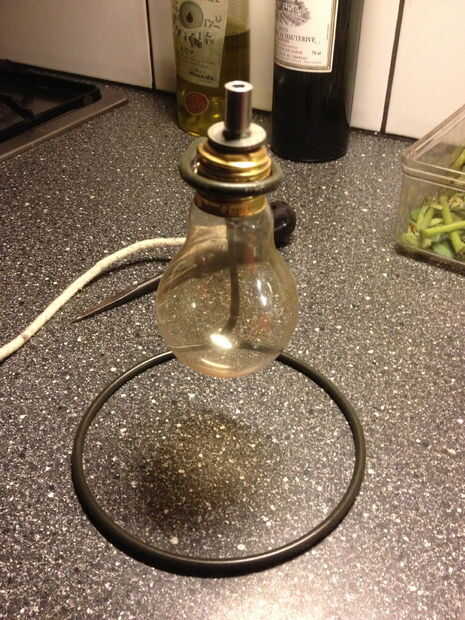 para llenar el bulbo con fluido de aceite, tuve un pequeño embudo en la apertura de la cinta.