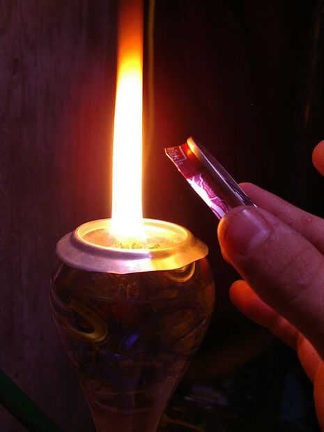 Tomar la otra mitad de una lata (pensamiento me olvidé no te: D) y corte a la plata, al igual que el otro puede. Después de esto, tomar la aleta y fuerza a su lugar original. Esto le rapé hacia fuera la llama.