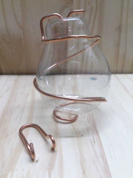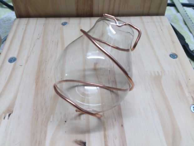 Para ello que he optado por un diseño en espiral, es muy sencillo, agarra un alambre de cobre grueso de unos 30 centímetros (12 pulgadas) de largo, luego sólo tienes que hacer la forma básica y luego moldear la forma de la bombilla, tenga cuidado de no aplastar al hacerlo, utilice guantes de protección para evitar cualquier peligro. Un par de pinzas puede ser muy útil para doblar el alambre con delicadeza.