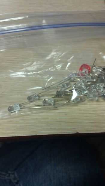 Una manera fácil de conseguir pilas de reloj y LEDs son encontrar juguetes muy baratos, junky en lugares como Dollar Tree o cualquier almacén del dólar y romperlos abierto para la adquisición de las mercancías dentro de. He comprado 36 juguetes "linterna" (imagen abajo) para un total de cerca de $24. Produjeron 108 baterías de reloj y 36 LED. Comprándolos por separado sería cerca de $13 para un paquete de 16 baterías y aproximadamente $2 por el LED de Radioshack.