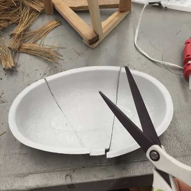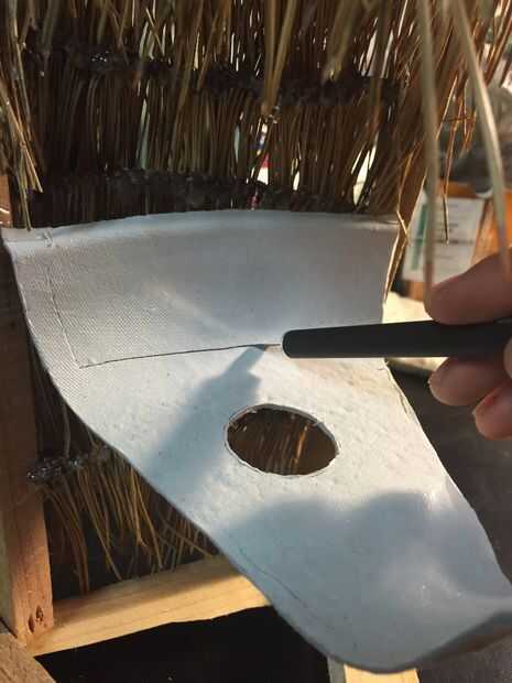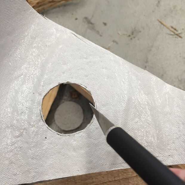 2. marcar el manguito en el recipiente y cortar un agujero ligeramente más pequeño que el círculo.