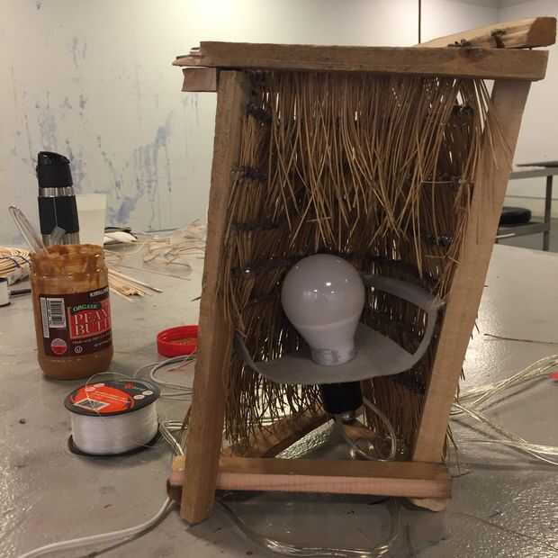 6. antes que cubre el lado pasado, asegúrese de que el bulbo del alambre y coloque en el recipiente (ver siguiente paso), pues sería imposible introducir la bombilla después de que se han cubierto los tres lados.