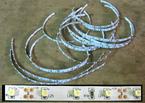 Cada marca de corte se coloca entre 3 LED y una resistencia como se muestra en la fotografía.