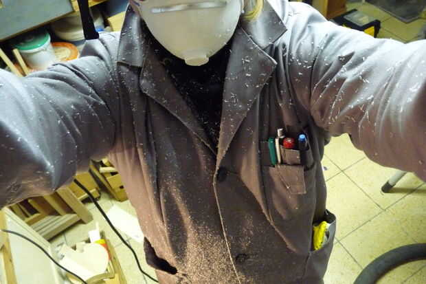 Asegúrese de usar equipo de seguridad adecuado, las virutas conseguirá absolutamente por todas partes (incluyendo, ojos, nariz, camiseta...)
